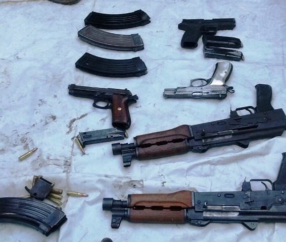 De los dos vehículos de los delincuentes, las autoridades aseguraron dos armas largas, tres pistolas automáticas calibre 9 milímetros, siete cargadores y cartuchos útiles.