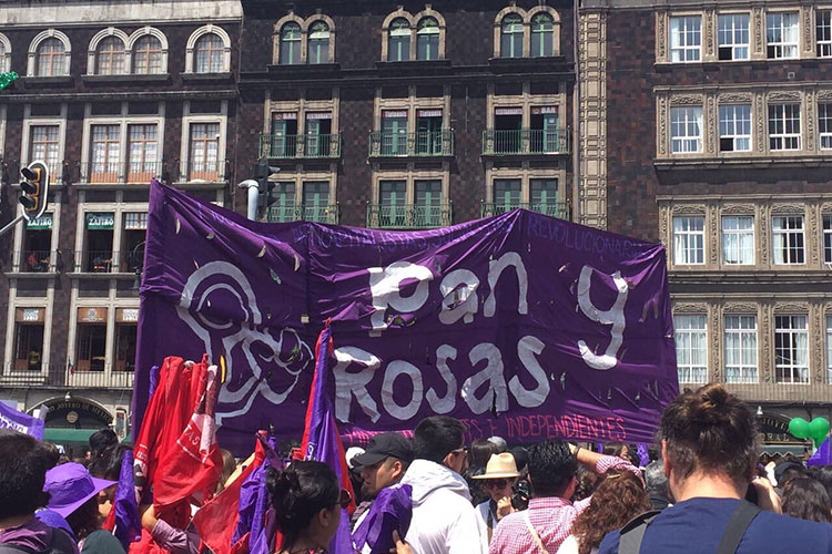 Los grupos se instalaron en la calle Álvaro Obregón, donde desplegaron una manta en la que escribieron #NiUnaMás, alzaron banderas y en breves periodos de tiempo se atravesaron la calle para gritar consignas en contra de los feminicidios en México.