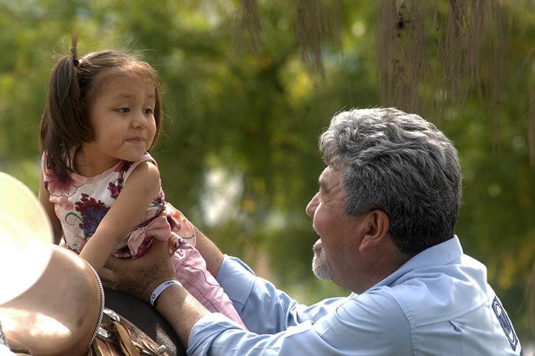 A Una nena que se acercó durante su estancia le dio una sesión de equino terapia, obreras y obreros montaron su caballo “El Africano”.