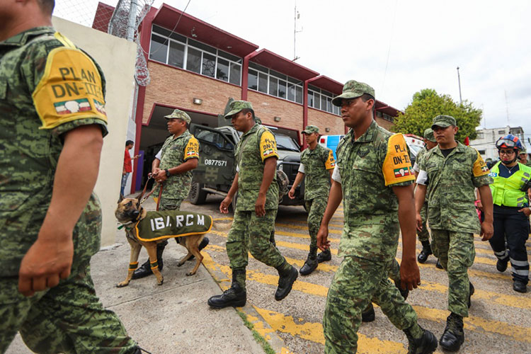 Una vez que las personas salieron del edificio, cuadrillas de SEDENA con apoyo de un binomio canino, entraron al lugar para verificar que ninguna persona estuviera en el interior.