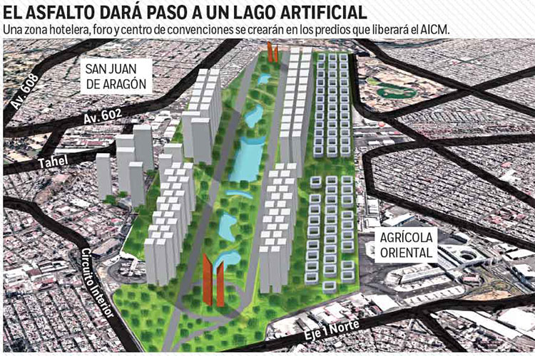 Proyectos previstos para el terreno del actual AICM, en caso de seguir la obra en Texcoco:
