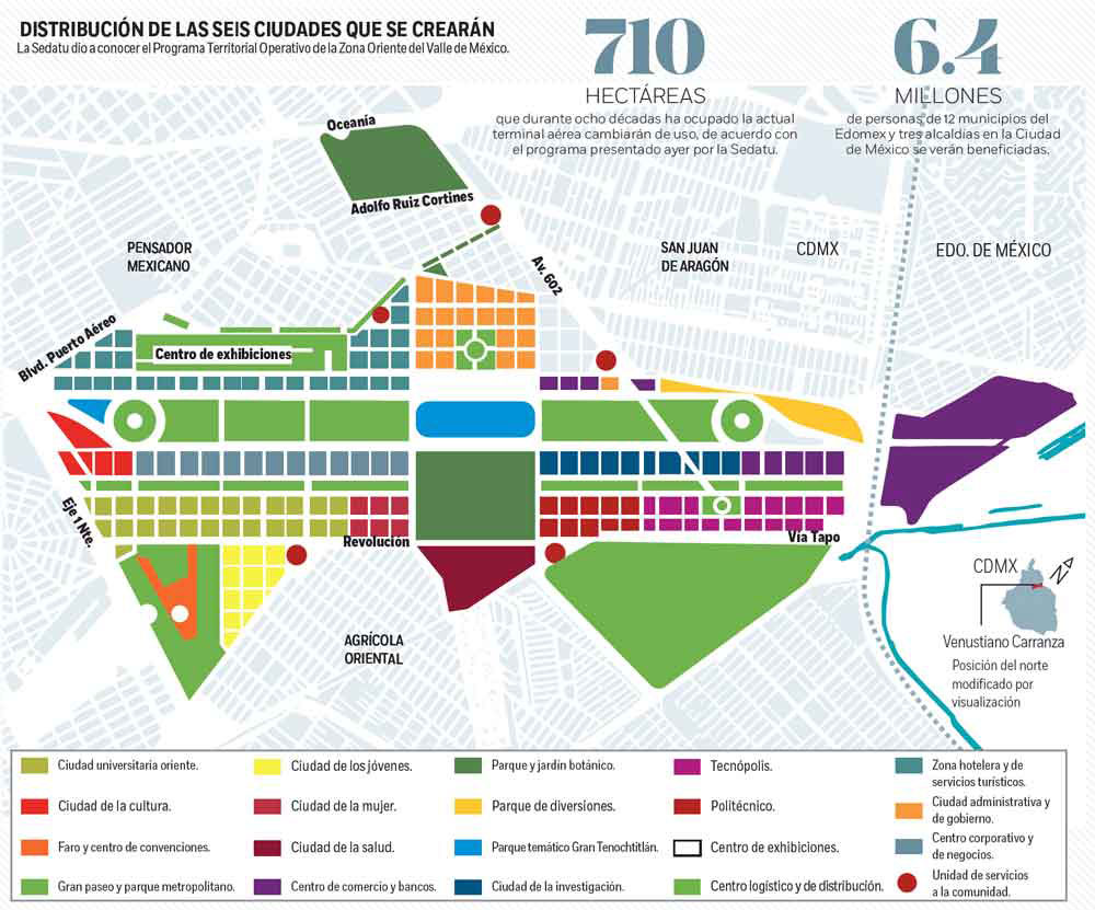 A dos días de que inicie la consulta convocada por Andrés Manuel López Obrador para definir el futuro del Nuevo Aeropuerto Internacional de México (NAIM), la Secretaría de Desarrollo Agrario, Territorial y Urbano (Sedatu), dio a conocer el proyecto de la administración de Enrique Peña Nieto para la reutilización de los terrenos que durante ocho décadas han ocupado la actual terminal aérea.