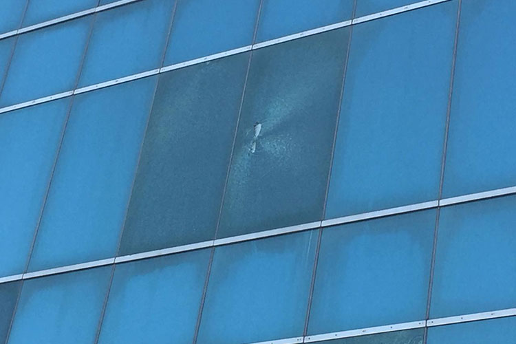 La torre que, entró en funcionamiento en el 2010, presenta impactos de bala de alto poder en las puertas principales, en los vidrios que componen en todo lo alto a la torre y a los costados del edificio.