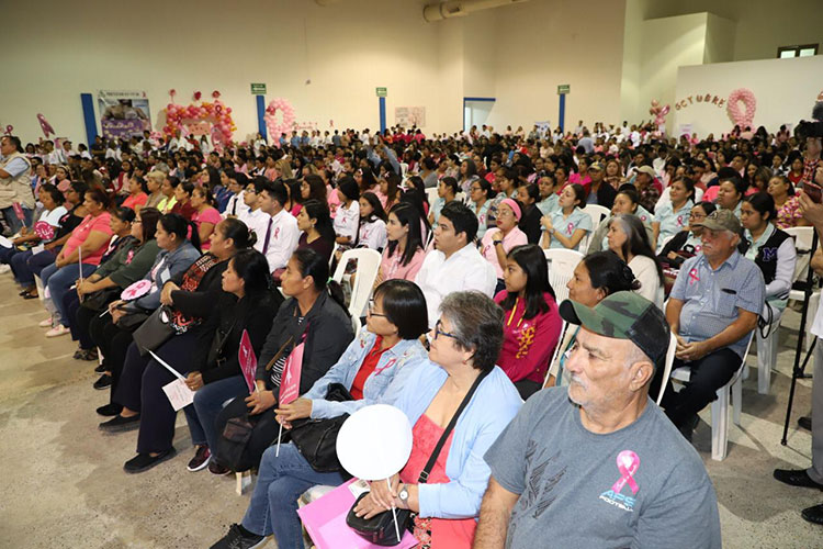 “Estemos pendientes de nuestro cuerpo y escuchémoslo cada vez que sintamos algo que no nos pertenece”, dijo la Presidente Municipal ante los asistentes, en su mayoría mujeres, al invitarlas a hacerse autoexploración, exámenes y mastografías, que en las instalaciones del DIF y en la Unidad Médica de La Joya, son gratuitas.