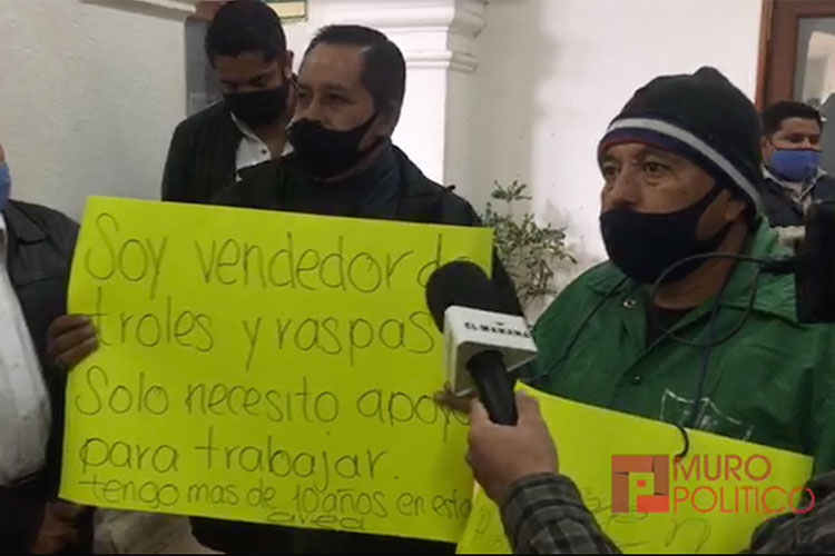 Mandaron policía de aquí (Presidencia Municipal) a quitarnos de nuestros lugares de trabajo, expresó una comerciante a la entrada, “Tengo más de 14 años trabajando en el mismo lugar y ahora me quieren correr”, comentó un vendedor de troles y raspas.