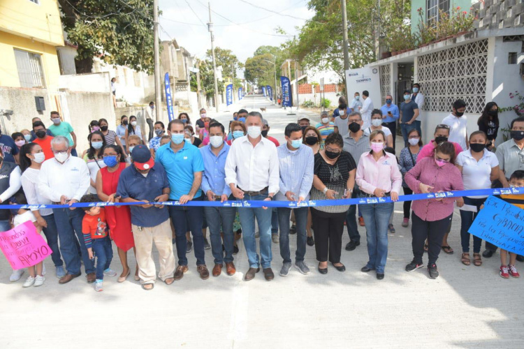 Tampico, Tamaulipas.- Mediante una inversión superior a los dos millones de pesos, el Presidente Municipal Chucho Nader inauguró este día, la pavimentación a base de concreto hidráulico y reposición hidrosanitaria de la calle Privada La Rivera en la colonia Niños Héroes, la cual ampliará el circuito vial de este sector y brindará una mejor movilidad a los vecinos de la zona.