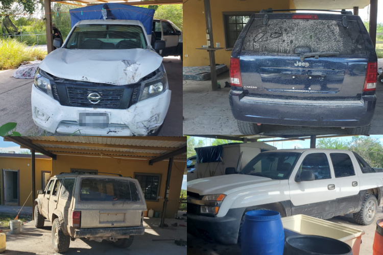 Al llegar al lugar, los Policías Estatales y los efectivos del GOPES, encontraron una Jeep Cherokee color café, una Jeep Grand Cherokee color azul, una Chevrolet Avalanche color blanco, una Nissan de carga color blanco y una Chevrolet Suburban color arena.