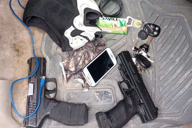 Tras emprender una búsqueda en los alrededores, se logró ubicar el vehículo circulando por las calles Francisco Ruiz Ramos, con calle Roble y calle Alberto Carrera Torres, del Barrio el Jicote, con tres hombres a bordo, por lo que se le dio alcance, entrevistándose con los tripulantes y posteriormente llevando a cabo la inspección de la unidad, encontrando en su interior dos armas cortas.