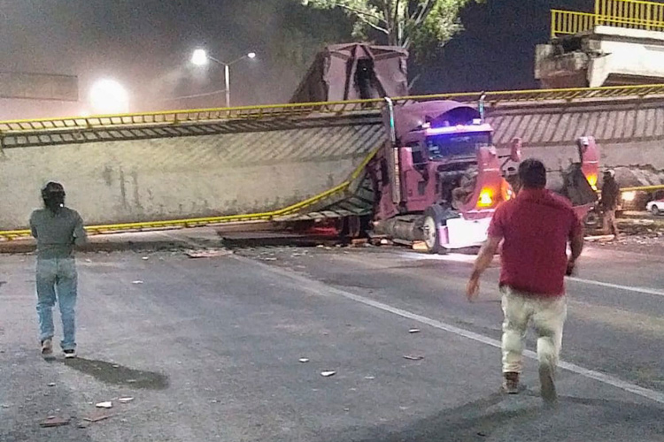 Ciudad de México.- La división de carreteras de la Guardia Nacional informó que durante la madrugada se restableció la circulación tras el accidente donde un tráiler de carga provocó el derribo de un puente peatonal en la carretera Los Reyes-Texcoco, en la entrada a Cuautlalpan, dañando además un taxi, cuyo conductor de forma preliminar resultó lesionado y fue trasladado a un hospital , informaron autoridades locales.