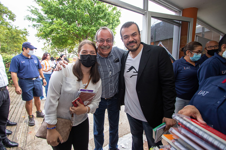En este contexto, el Rector de la UAT agradeció la donación de más de tres mil libros del Fondo de Cultura Económica ((FCE) que entregó el titular de Educal, mismos que fueron distribuidos a los estudiantes al concluir el magno evento realizado en el Gimnasio Olímpico del campus Tampico.