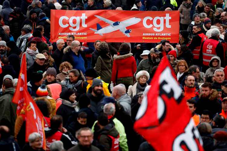 “Nos espera un duro conflicto”, pronosticó el líder del sindicato FO, Frédéric Souillot, sobre este primer frente sindical unitario desde 2010 cuando intentaron en vano impedir el retraso de la edad de jubilación de 60 a 62 años.