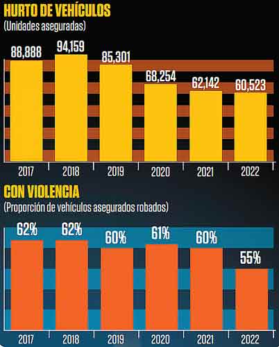 Ciudad de México.- Durante 2022 se contabilizaron 60 mil 523 autos asegurados robados, el dato más bajo reportado desde 2017; lo que se traduce en 166 coches robados por día, dio a conocer la Asociación Mexicana de Instituciones de Seguros (AMIS).