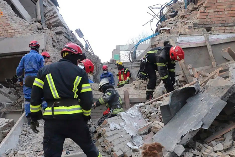 El cuerpo de un hombre de 40 años fue sacado de los escombros en el quinto piso de un dormitorio, según el jefe de policía regional, Andrii Nebytov.