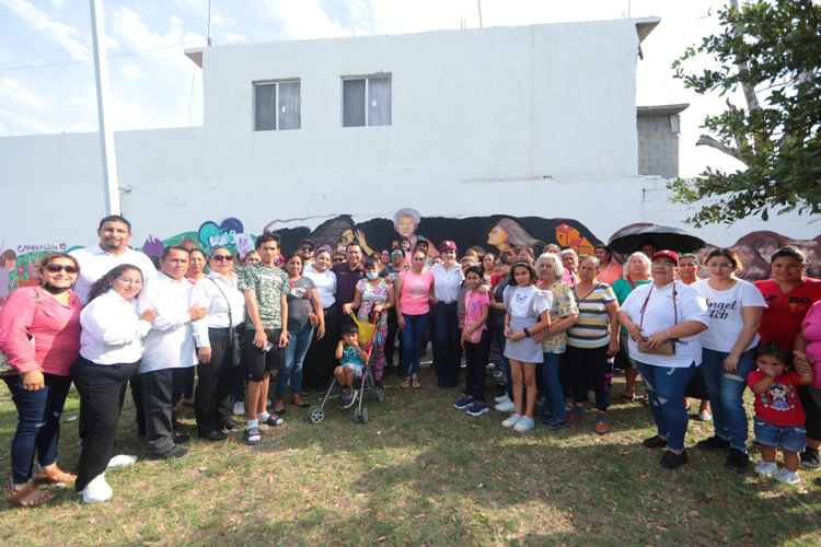 Este evento se desarrolló en el “Parque Deportivo” de dicha colonia, ahí la alcaldesa Carmen Lilia Canturosas junto a niños, jóvenes, adultos y autoridades municipales observó el mural que fue creado conforme a las ideas que expresaron los habitantes de la colonia.