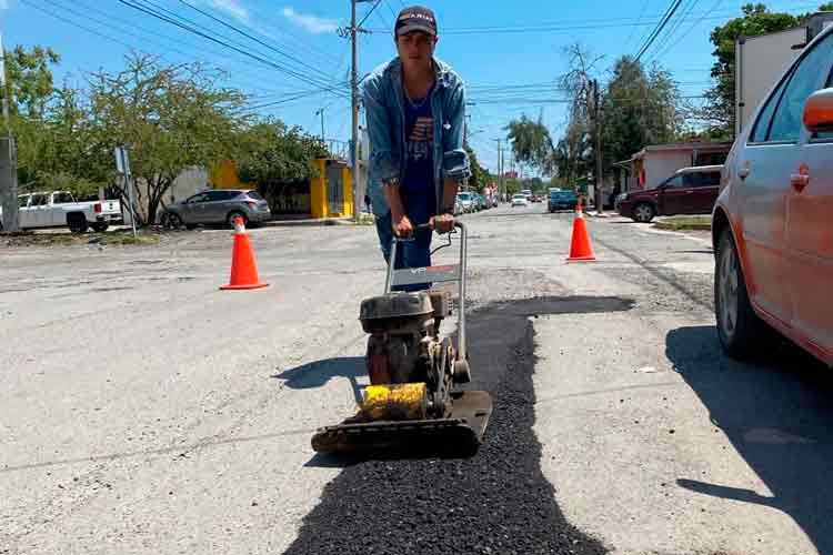 Por instrucción del alcalde Eduardo Gattás Báez, cuadrillas de bacheo acudieron a las colonias Del Periodista para reparar la carpeta asfáltica de la calle Mier y Terán; así como a la avenida 16 de Septiembre de la colonia del mismo nombre.