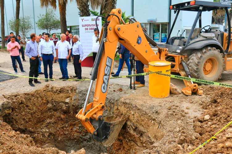 A temprana hora, arribó a la calle 8 Veracruz acompañado de personal técnico de la Secretaría de Obras Públicas del Estado, el gerente general de COMAPA y Obras Públicas del Municipio, para verificar la sustitución de tubería de 20 pulgadas, que, con más de 50 años de función, cumplió su vida útil.