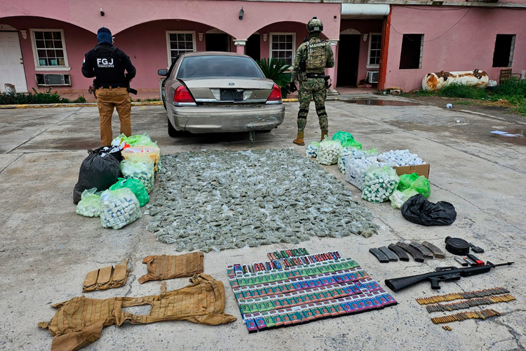 Reynosa, Tamaulipas.- La Fiscalía General de Justicia del Estado de Tamaulipas informa que, derivado de labores de inteligencia e investigación conjuntos con la Secretaría de Marina Armada de México, en el poblado de Nuevo Progreso, municipio de Río Bravo, fue desmantelado un centro de monitoreo irregular operado por un grupo delictivo y asegurados medicamentos no regulados, así como bolsas plásticas con hierba verde y seca con las características de la marihuana.
