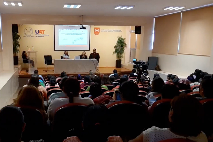 A este respecto, la Dra. Norma Alicia Vega López, investigadora de la Facultad de Ciencias de la Educación y Humanidades, dictó la charla “Tendencias de investigación en alfabetización” a estudiantes de ese plantel del Campus Victoria.
