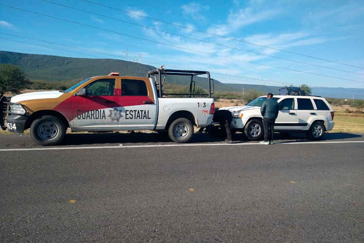 Tal fue el caso de una familia proveniente del estado de Nuevo León con destino a Huejutla, Hidalgo, quien fue auxiliada por el personal de la Guardia Estatal luego de que el vehículo en que viajaban, una camioneta Jeep Cherokee, modelo 2009 sufrió afectaciones mecánicas.