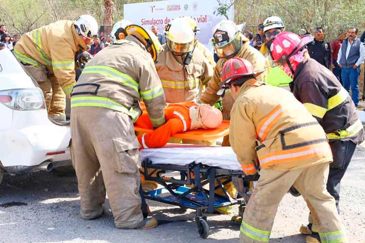 Ciudad Victoria, Tamaulipas. – Personal operativo y técnico de la Coordinación de Protección Civil y Dirección de Tránsito Municipal dieron una exhibición de conocimiento, habilidades y actitudes en la atención de un accidente vehicular con hipótesis de personas prensadas.