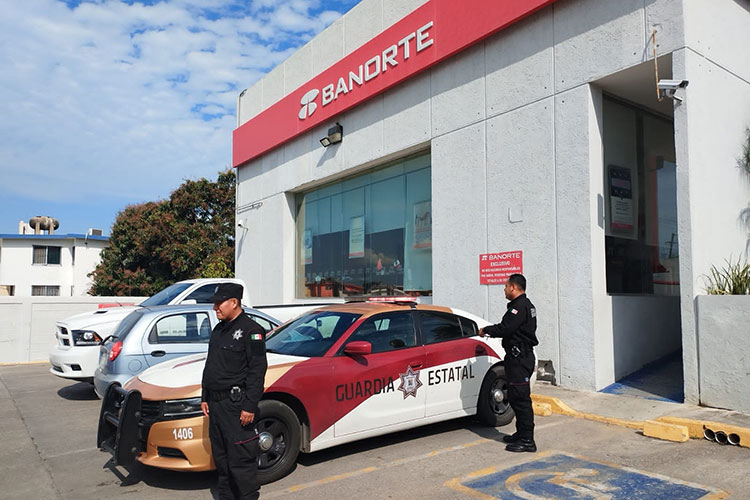 Ciudad Victoria, Tamaulipas.- Con el objetivo de preservar el patrimonio de las y los tamaulipecos, personal de la Guardia Estatal mantiene la vigilancia en bancos y cajeros.