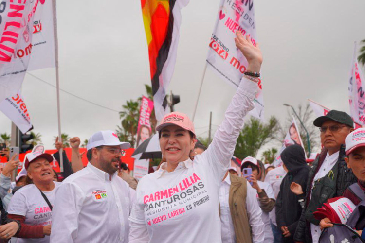 Nuevo Laredo, Tamaulipas.- Ni la lluvia detuvo el entusiasmo de más de 2 mil personas que acompañaron a la candidata a la presidencia municipal por la coalición Morena, Verde y PT Carmen Lilia Canturosas Villarreal en la Mega Brigada de Impacto que se realizó en Reforma y Paseo Colón demostrando con su apoyo que una vez más será la alcaldesa de Nuevo Laredo.