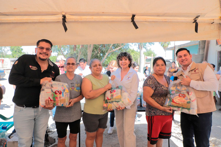Continuando con la gira de trabajo por la frontera, la secretaria de SEBIEN, Silvia Casas realizó la entrega de paquetes alimentarios en la Colonia Industrial de Reynosa.