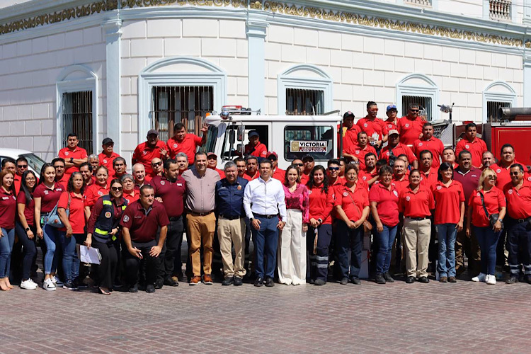 Ciudad Victoria, Tamaulipas.– En conmemoración por el Día del Bombero, el presidente municipal de Victoria Eduardo Gattás Báez, reconoció al personal del Heroico Cuerpo de Bomberos por su trabajo y valentía para proteger la vida y patrimonio de los victorenses.