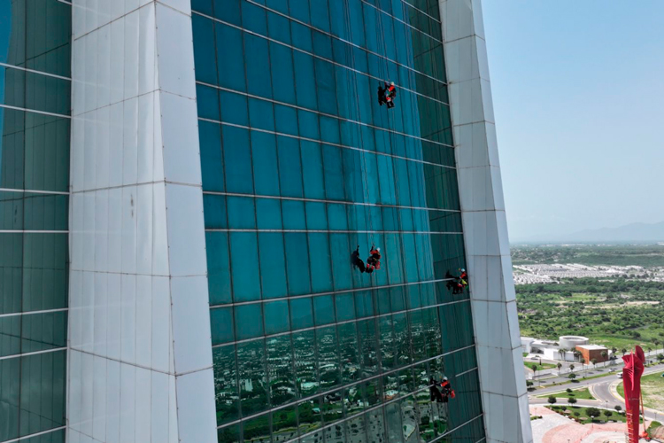 Dijo que el gasto por el mantenimiento de la Bicentenario, nos salió muy barato, lo único que le da miedo, es que le gente anda mero arriba limpiando los cristales, obviamente con las precauciones y medidas de seguridad, sin embargo, están dejando la Torre en muy buen estado.