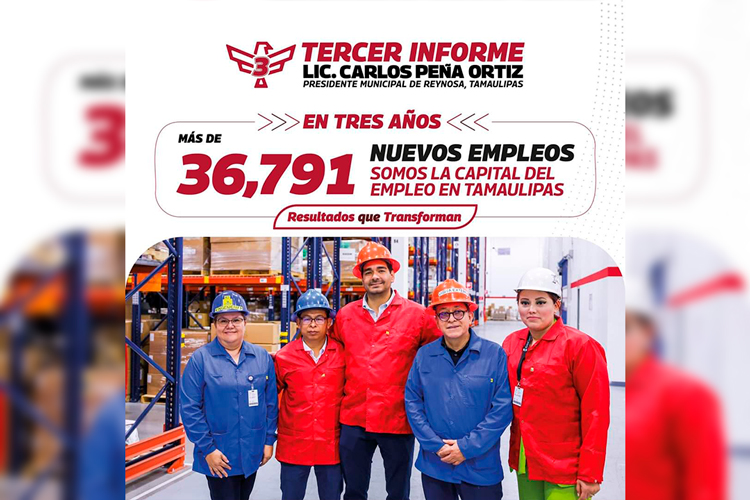 En solo 3 años, en Reynosa se han generado más de 36,791 nuevos empleos, esto consolidando a nuestro municipio como la capital del empleo en Tamaulipas. ¡Un verdadero récord! que genera bienestar para la comunidad.
