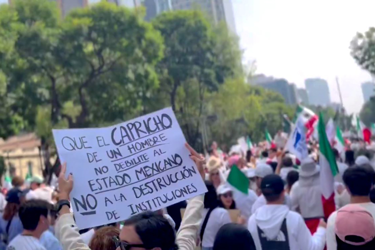 En el trayecto se escucharon consignas como “si el pueblo se informa no pasa la reforma”, “Somos los guardianes de la Constitución”, además llevaban carteles en los leía “Sí a la separación de Poderes”, “la justicia no se vota”, entre otras.