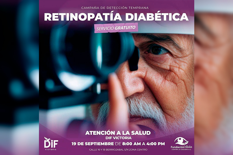 Ciudad Victoria, Tamaulipas. – Continuando con el compromiso social del DIF Victoria, la presidenta Lucy de Gattás, anunció que a través de la campaña de salud gratuita y de calidad, se brindará el servicio de Detección Temprana de Retinopatía Diabética.