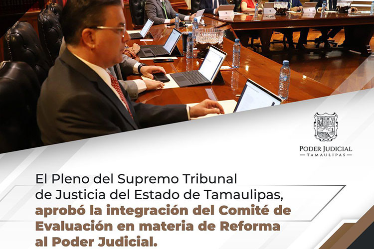 Ciudad Victoria, Tamaulipas.- En sesión extraordinaria, el Pleno del Supremo Tribunal de Justicia del Estado de Tamaulipas, aprobó la propuesta para la integración del Comité de Evaluación en materia de reforma al Poder Judicial.
