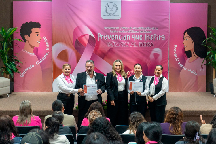 Ciudad Victoria, Tamaulipas.- La Universidad Autónoma de Tamaulipas, a través de Familia UAT, llevó a cabo la conferencia y taller de sensibilización de la lucha contra el cáncer de mama “Prevención que inspira, súmate al rosa”, con el propósito de promover la conciencia sobre la detección oportuna y fortalecer la cultura de la prevención en la comunidad universitaria.