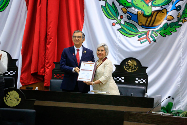 “Para mí, querida maestra, es un orgullo estar presente en esta sesión solemne y atestiguar que la Medalla al Mérito “Luis García de Arellano”, la recibe usted, a cuyo reconocimiento me sumo absolutamente y con enorme gusto”, dijo.