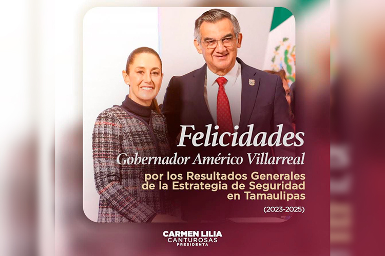 Ciudad Victoria, Tamaulipas.- La estrategia de Seguridad implementada en el gobierno de Américo Villarreal tiene avances y ha generado estabilidad en Tamaulipas y un mayor control en el combate a la violencia, destacó Carmen Lilia Canturosas Alcaldesa de Nuevo Laredo.