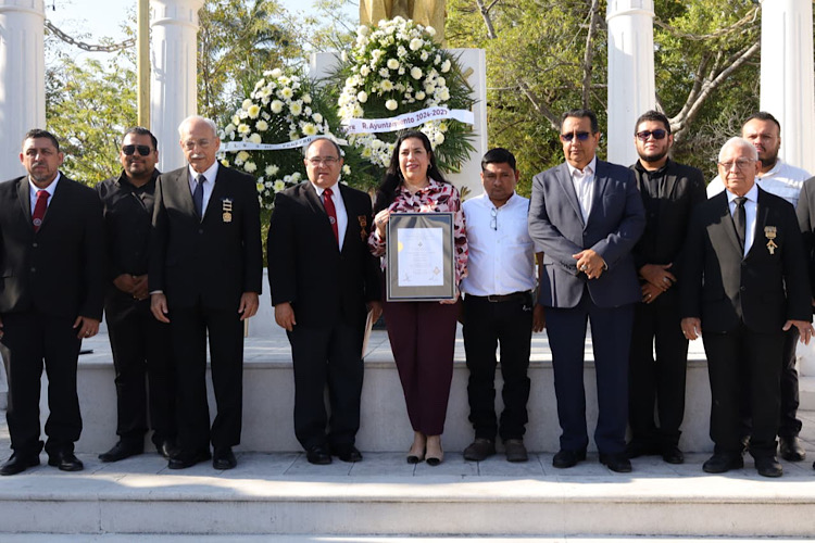 Durante el acto, miembros de la Logia Masónica “5 de Febrero No. 34” y del Séptimo Distrito Masónico entregaron un reconocimiento a la alcaldesa, destacando su trabajo en favor de la comunidad.
