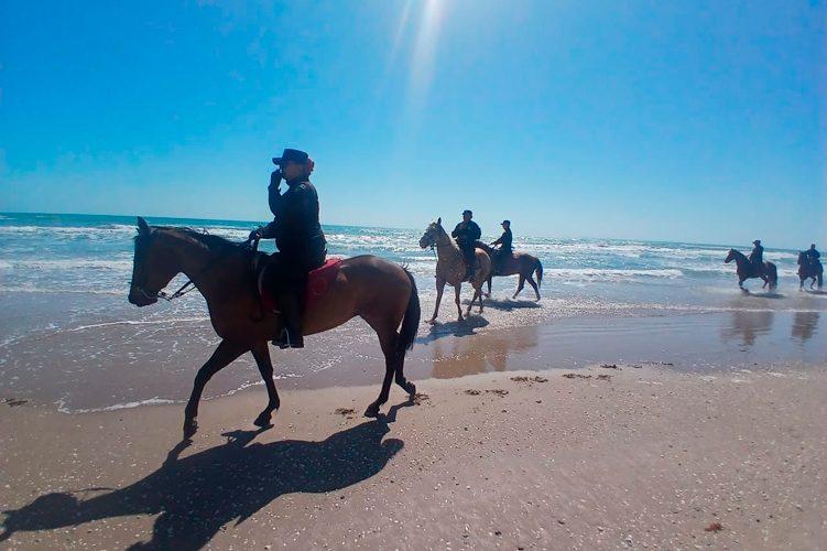 Soto la Marina, Tamaulipas.– En el marco del periodo vacacional de Semana Santa 2026, el Agrupamiento Montado de la Guardia Estatal puso en marcha un operativo especial de seguridad en la playa La Pesca, uno de los destinos turísticos más concurridos del estado.