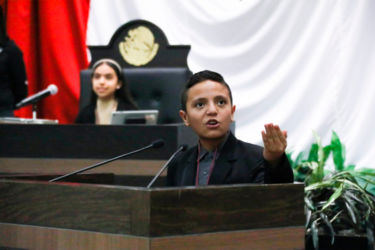 Ciudad Victoria, Tamaulipas.– Niñas, niños y adolescentes tomaron la tribuna legislativa para proponer cambios en favor de la educación incluyente, durante el Segundo Parlamento Infantil realizado en el Congreso local.